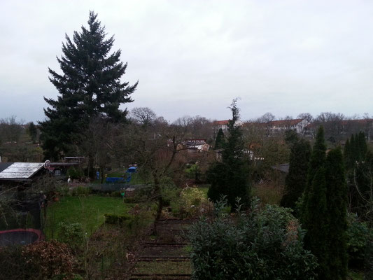 Oben hatte man dann auch eine tolle Aussicht. Leider war es etwas diesig, so dass man die Stadt unten nicht wirklich klar erkennen konnte. Der Blick in den Wald und vor allem die Ruhe (zumindest vom Straßenverkehr) waren toll.