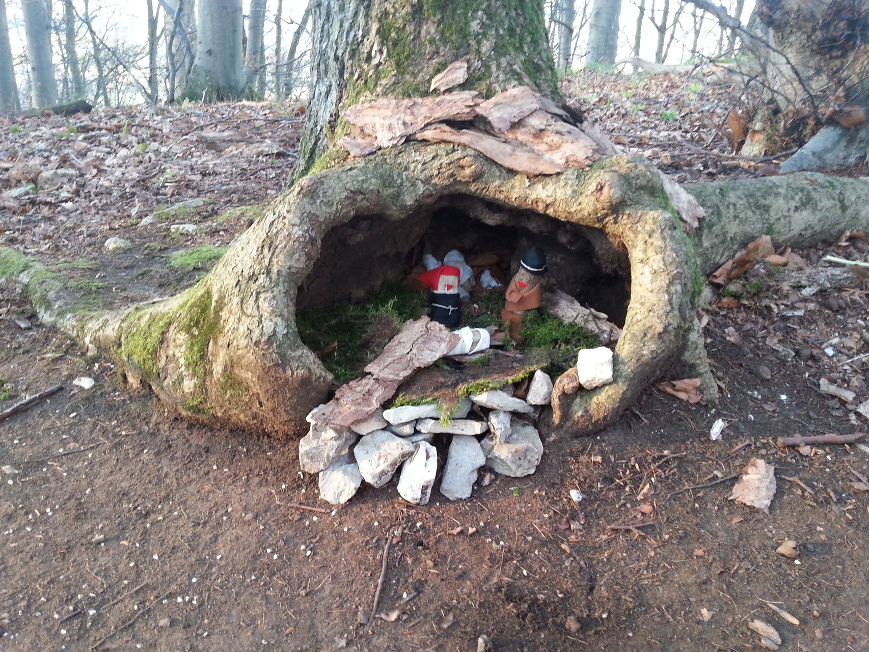 Die Krippe haben wir durch Zufall gefunden und ich find sie total niedlich. Den Engel erkennt man auf dem Foto leider nicht und man könnte ihn auch für einen Drachen halten, aber die Idee ist toll.